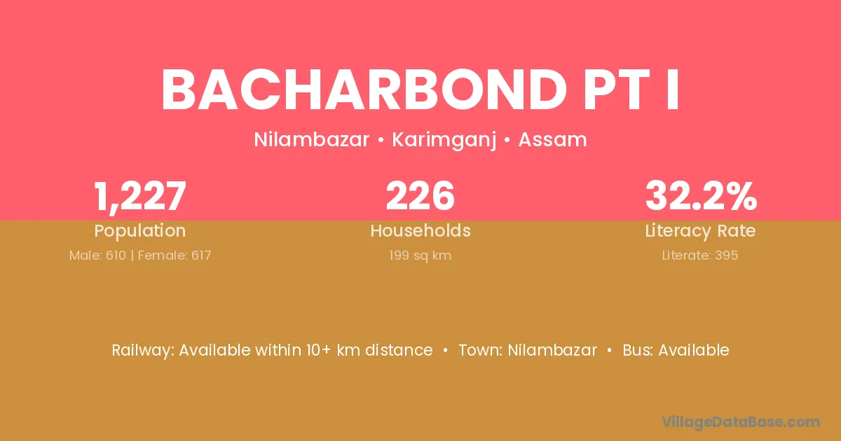 Bacharbond Pt I village has a total population of 1,227 people, of which 610 are males and 617 are females.