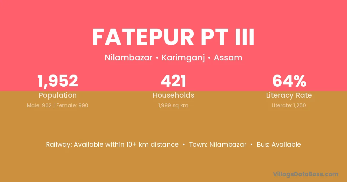 Fatepur Pt Iii village is located in the Nilambazar Subdivision of the Karimganj district in Assam .