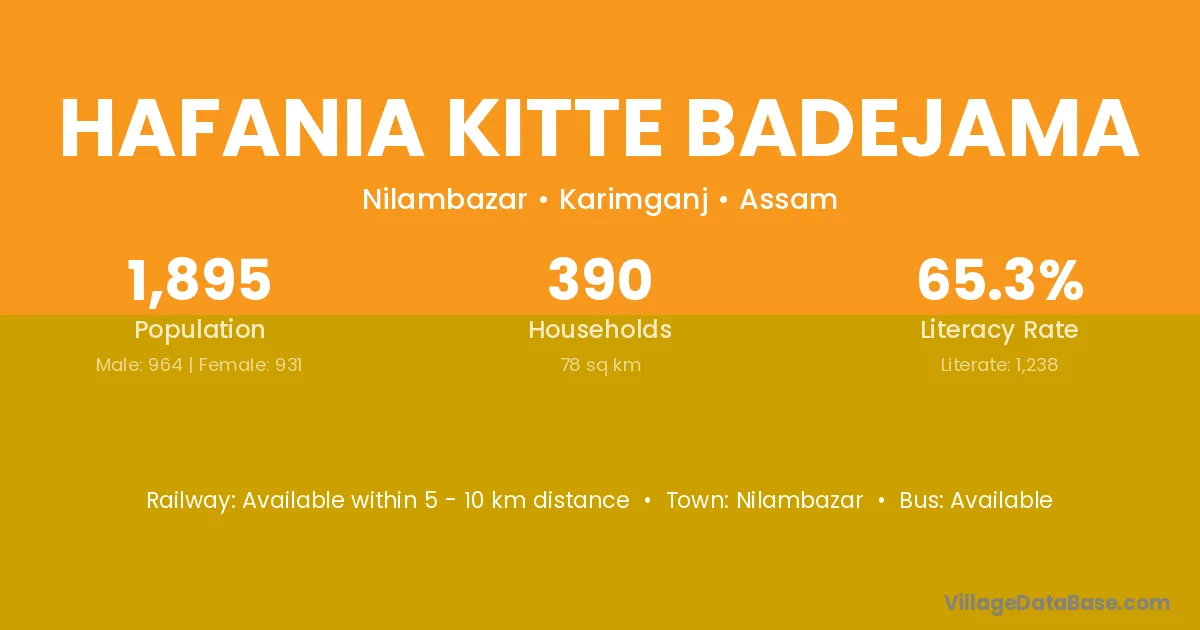 Hafania Kitte Badejama village is located in the Nilambazar Subdivision of the Karimganj district in Assam .