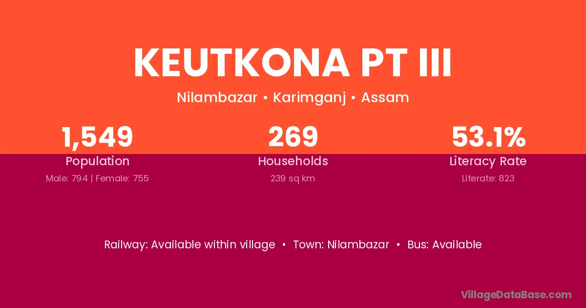 Keutkona Pt Iii village has a total population of 1,549 people, of which 794 are males and 755 are females.
