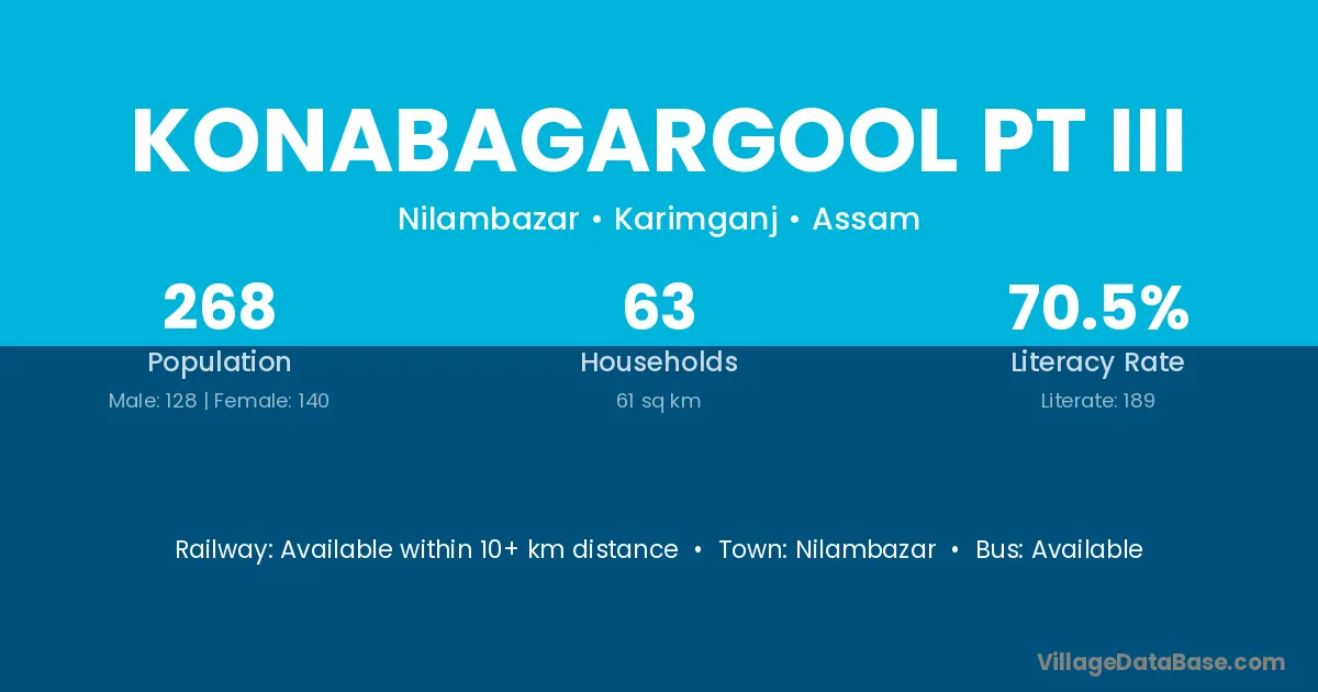 Konabagargool Pt Iii village has a total population of 268 people, of which 128 are males and 140 are females.
