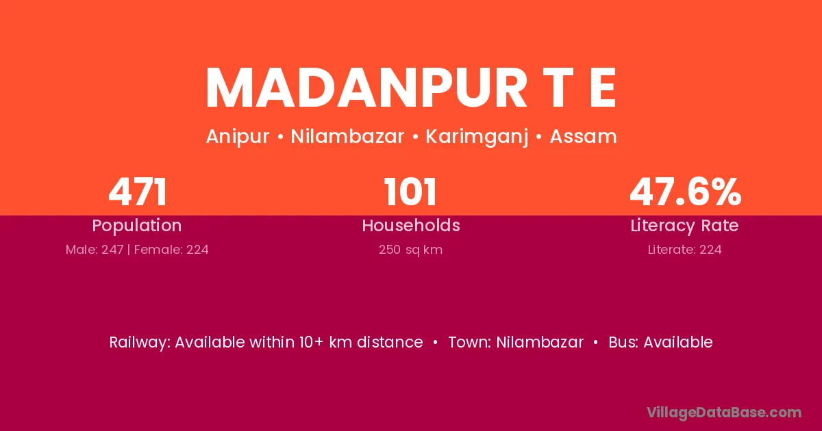 Madanpur T E village has a total population of 471 people, of which 247 are males and 224 are females.