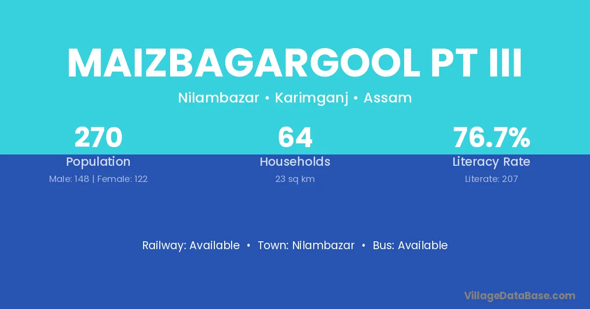 Maizbagargool Pt Iii village has a total population of 270 people, of which 148 are males and 122 are females.