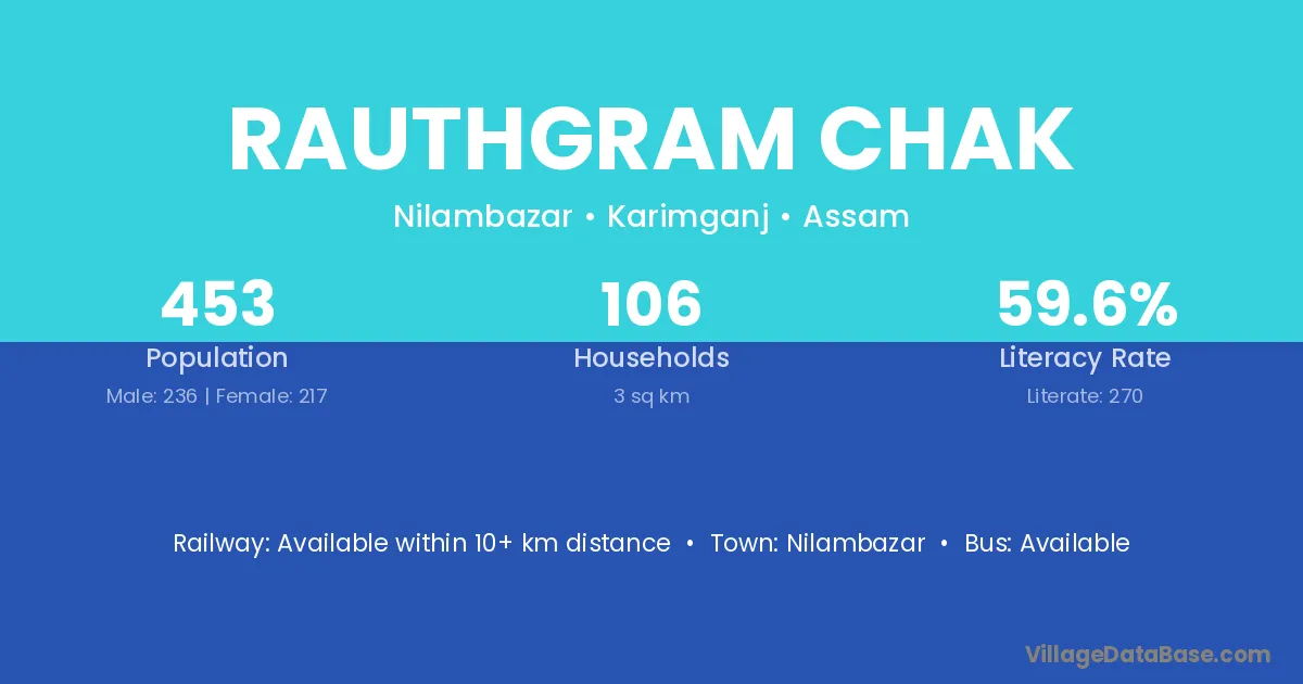 Rauthgram Chak village has a total population of 453 people, of which 236 are males and 217 are females.