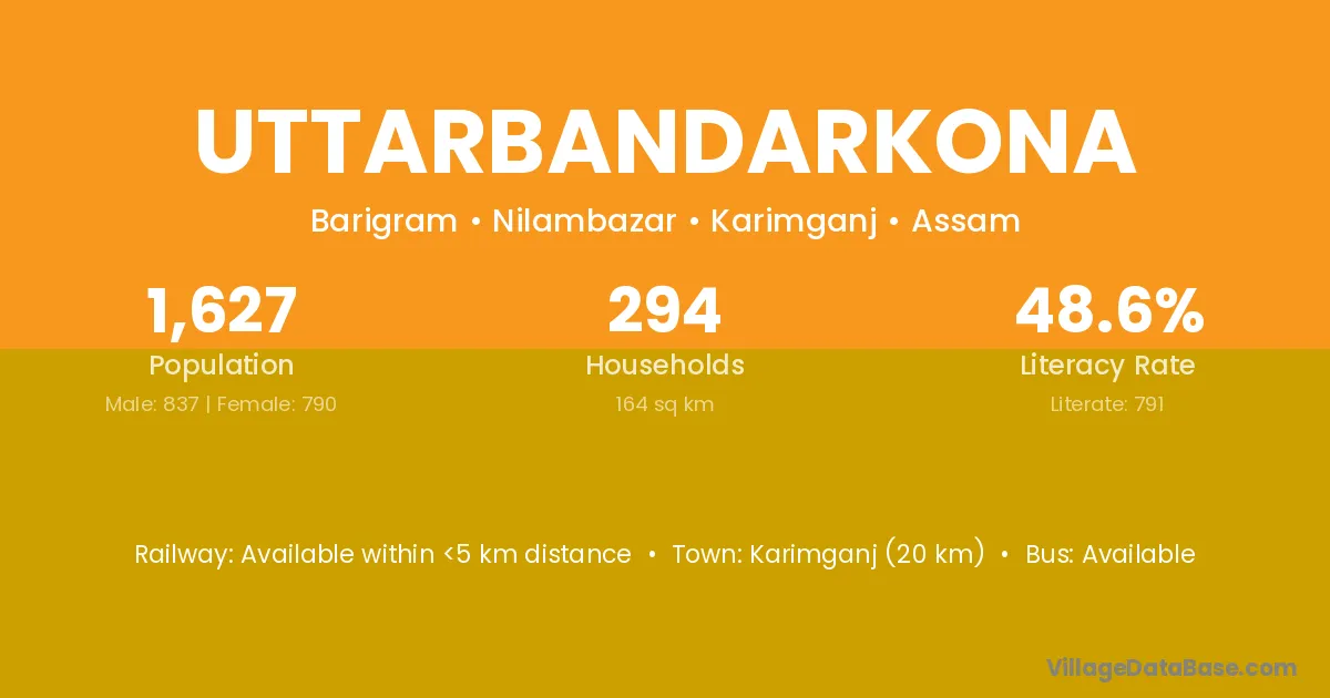 Karimganj (20 km) is the nearest town to Uttarbandarkona village for major economic activities and is located approximately 20 km away.