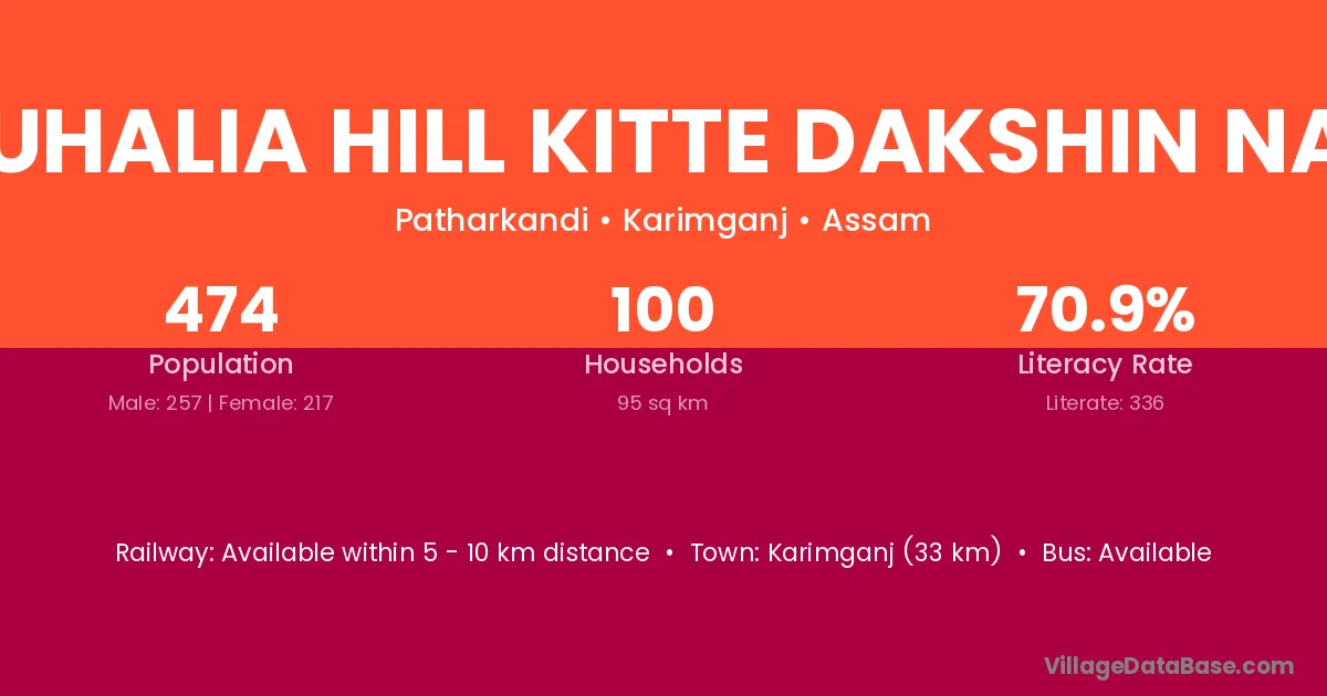 Duhalia Hill Kitte Dakshin Nar village has a total population of 474 people, of which 257 are males and 217 are females.