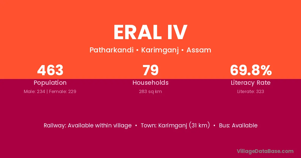 Karimganj (31 km) is the nearest town to Eral Iv village for major economic activities and is located approximately 31 km away.