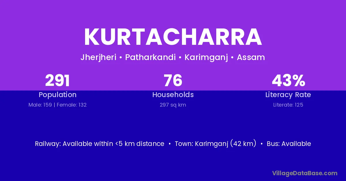 Karimganj (42 km) is the nearest town to Kurtacharra village for major economic activities and is located approximately 42 km away.