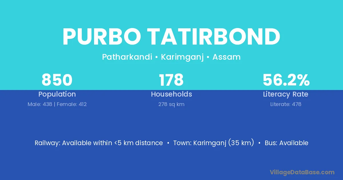 Karimganj (35 km) is the nearest town to Purbo Tatirbond village for major economic activities and is located approximately 35 km away.