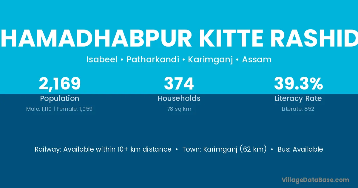 Karimganj (62 km) is the nearest town to Radhamadhabpur Kitte Rashidpur village for major economic activities and is located approximately 62 km away.
