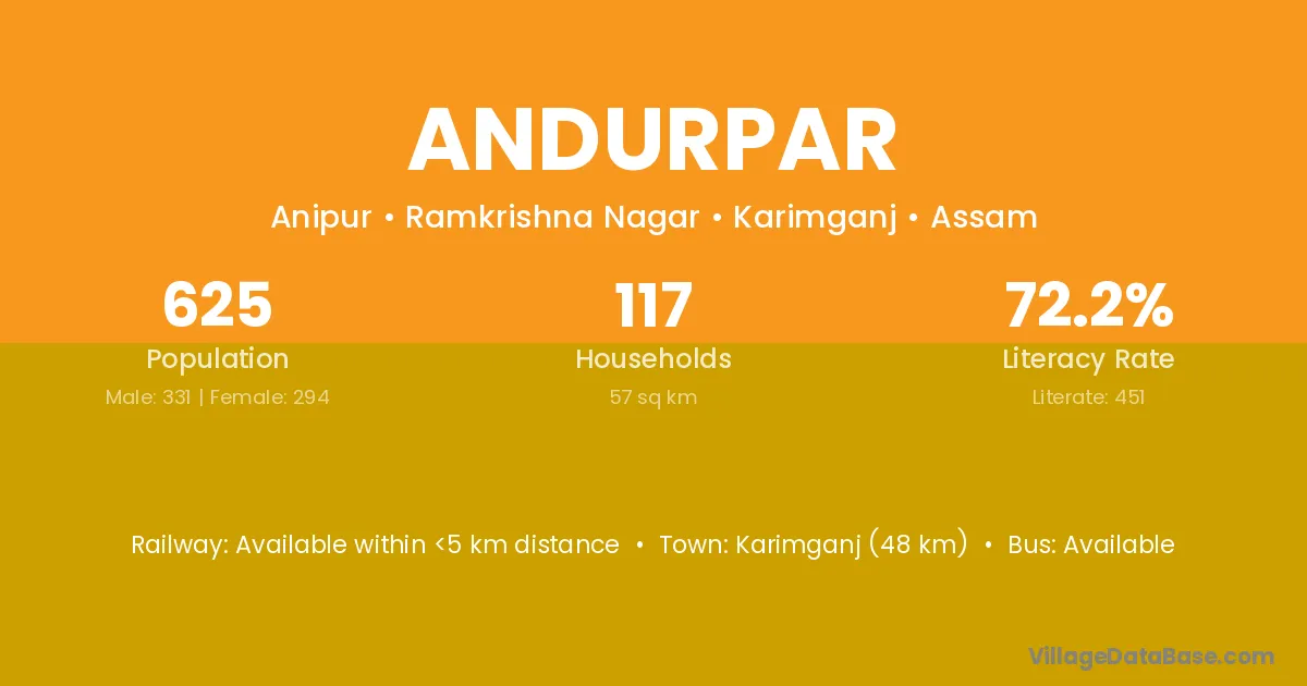 Karimganj (48 km) is the nearest town to Andurpar village for major economic activities and is located approximately 48 km away.