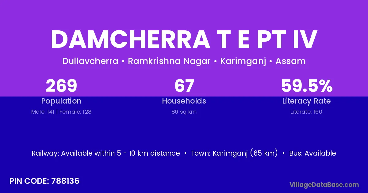 According to Census 2011 information, the village code of Damcherra T E Pt Iv village is 788136.