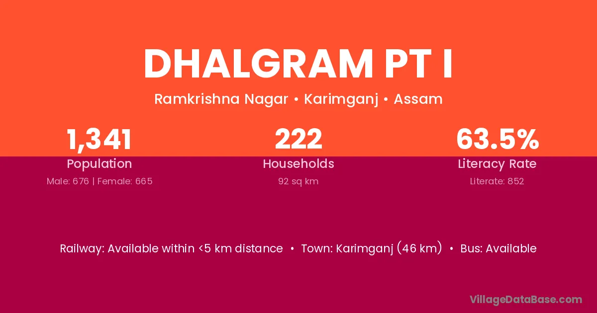 Karimganj (46 km) is the nearest town to Dhalgram Pt I village for major economic activities and is located approximately 46 km away.
