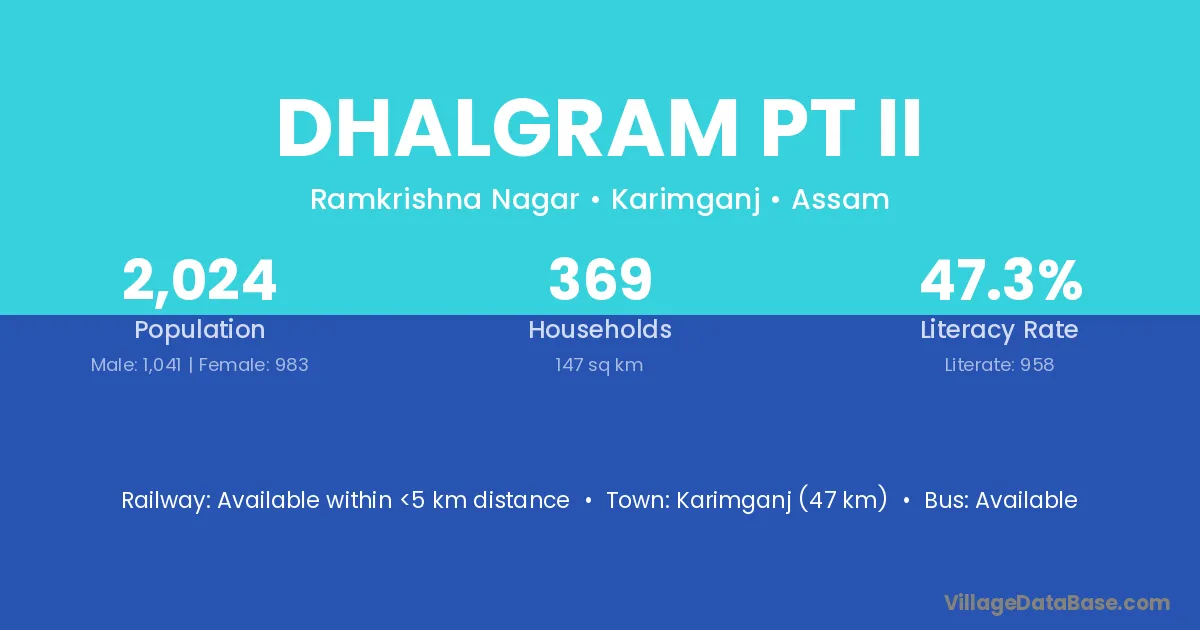 Karimganj (47 km) is the nearest town to Dhalgram Pt Ii village for major economic activities and is located approximately 47 km away.