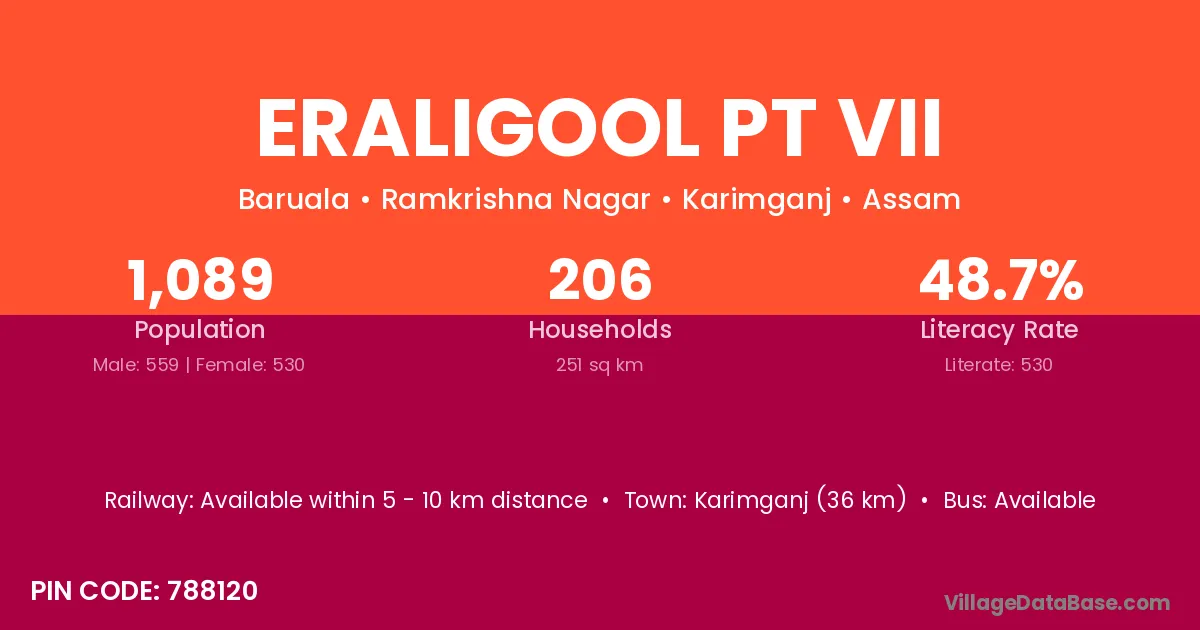 Eraligool Pt Vii village is located in the Ramkrishna Nagar Subdivision of the Karimganj district in Assam .