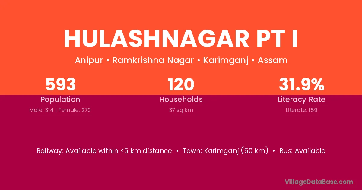 Karimganj (50 km) is the nearest town to Hulashnagar Pt I village for major economic activities and is located approximately 50 km away.