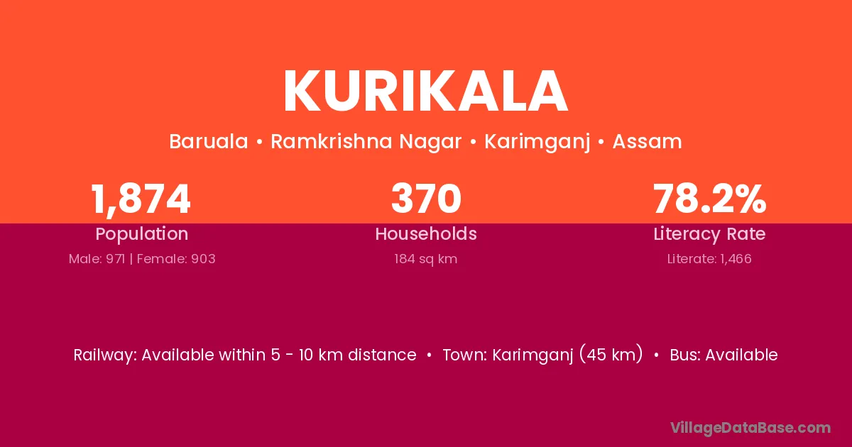 Karimganj (45 km) is the nearest town to Kurikala village for major economic activities and is located approximately 45 km away.