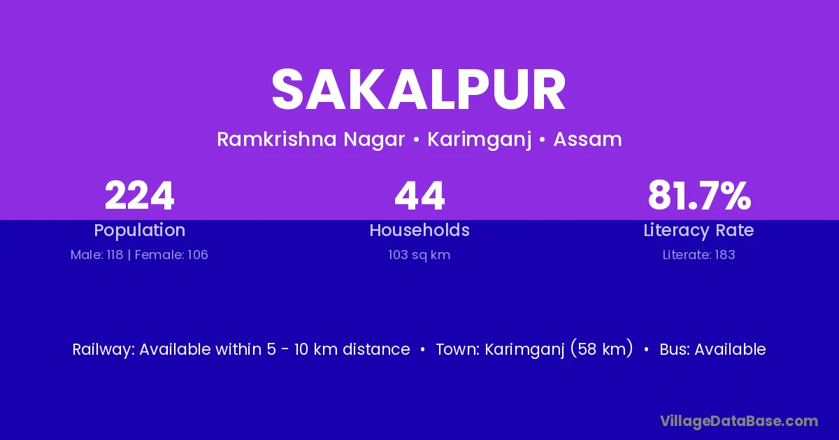 Karimganj (58 km) is the nearest town to Sakalpur village for major economic activities and is located approximately 58 km away.