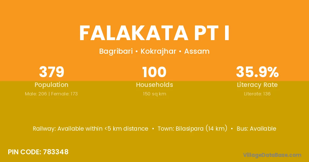 Bilasipara (14 km) is the nearest town to Falakata Pt I village for major economic activities and is located approximately 14 km away.