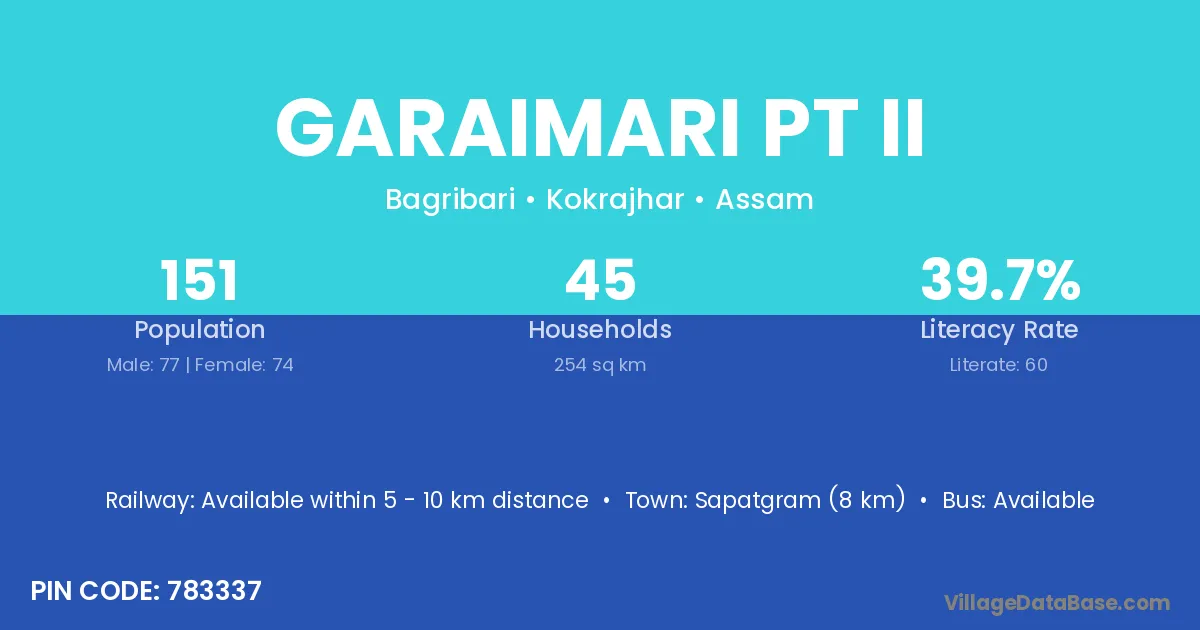 Sapatgram (8 km) is the nearest town to Garaimari Pt Ii village for major economic activities and is located approximately 8 km away.