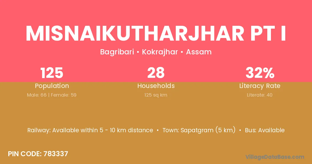 Misnaikutharjhar Pt I village has a total population of 125 people, of which 66 are males and 59 are females.