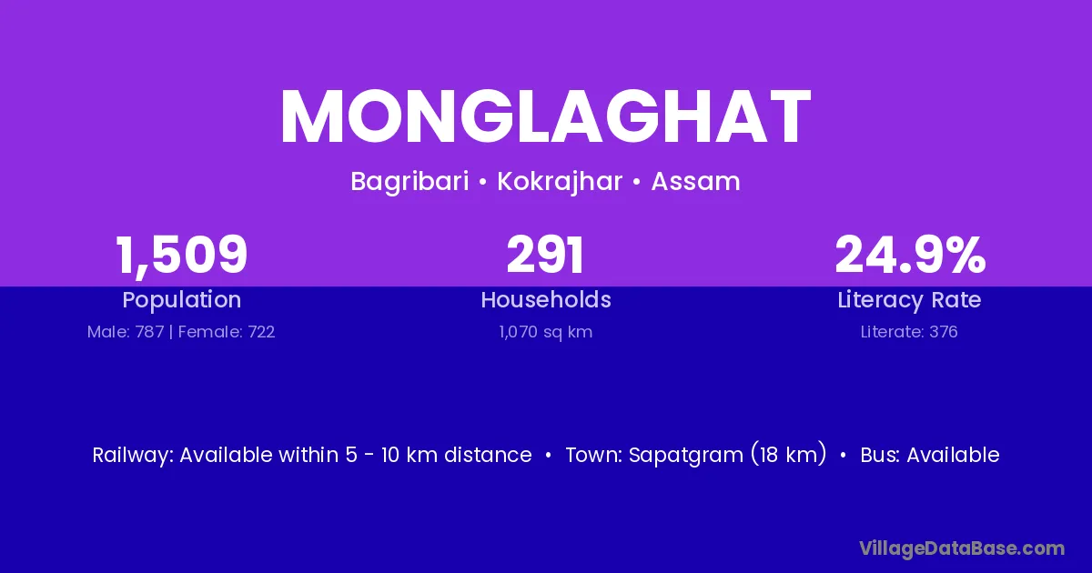 Sapatgram (18 km) is the nearest town to Monglaghat village for major economic activities and is located approximately 18 km away.