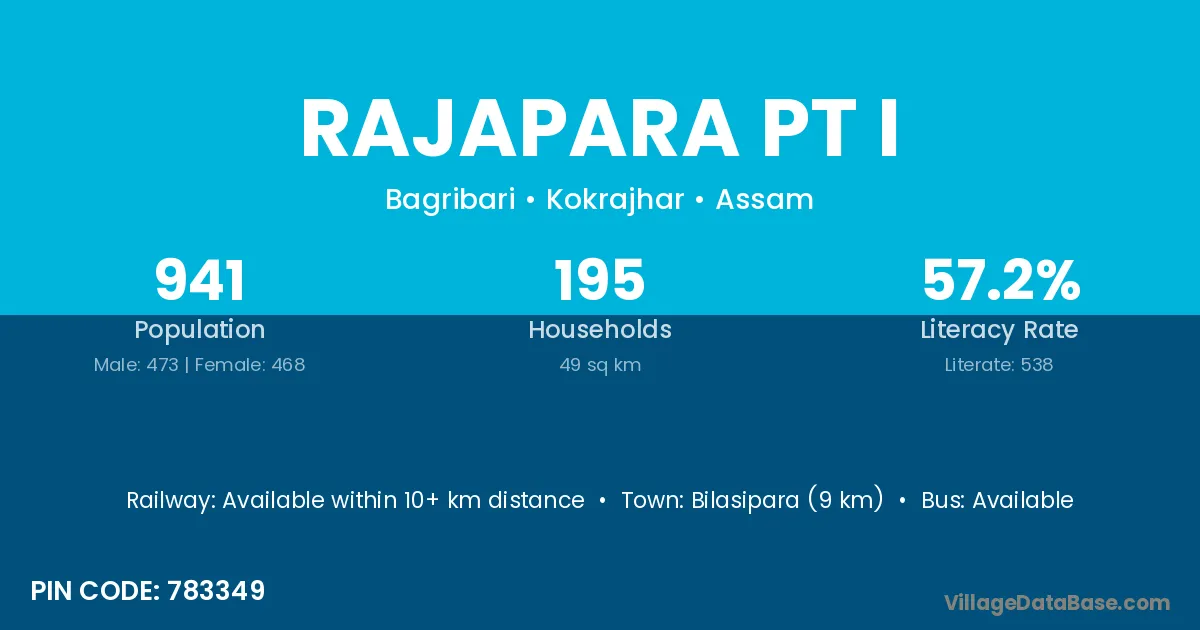 Bilasipara (9 km) is the nearest town to Rajapara Pt I village for major economic activities and is located approximately 9 km away.