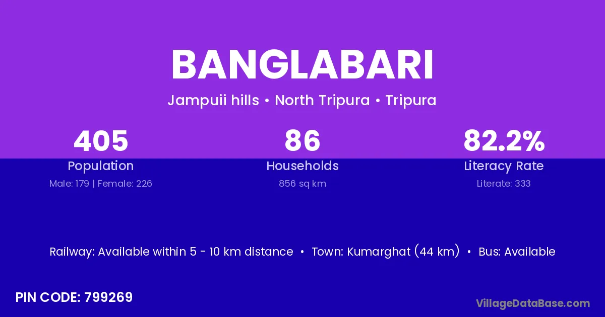The literacy rate of Banglabari village is 40.25%. Male literacy stands at 44.81% and female literacy at 34.67%.