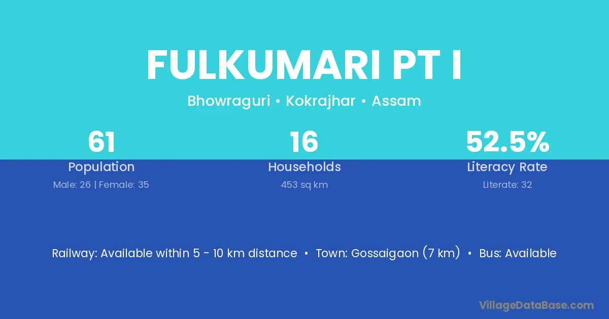 Gossaigaon (7 km) is the nearest town to Fulkumari Pt I village for major economic activities and is located approximately 7 km away.