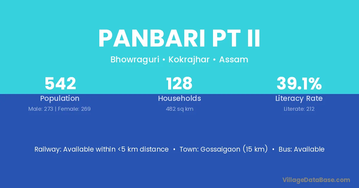 Panbari Pt Ii village has a total population of 542 people, of which 273 are males and 269 are females.