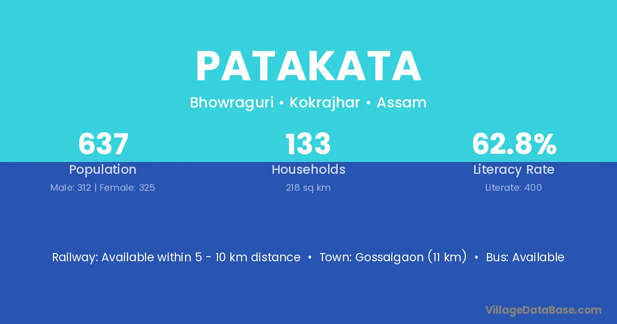 Gossaigaon (11 km) is the nearest town to Patakata village for major economic activities and is located approximately 11 km away.