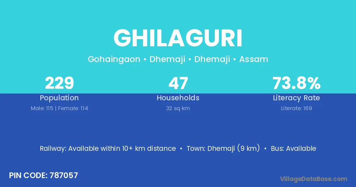 Kokrajhar (13 km) is the nearest town to Ghilaguri village for major economic activities and is located approximately 13 km away.