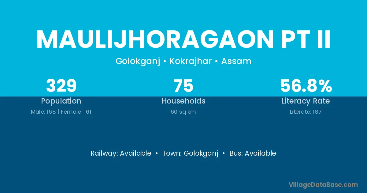 Maulijhoragaon Pt Ii village has a total population of 329 people, of which 168 are males and 161 are females.