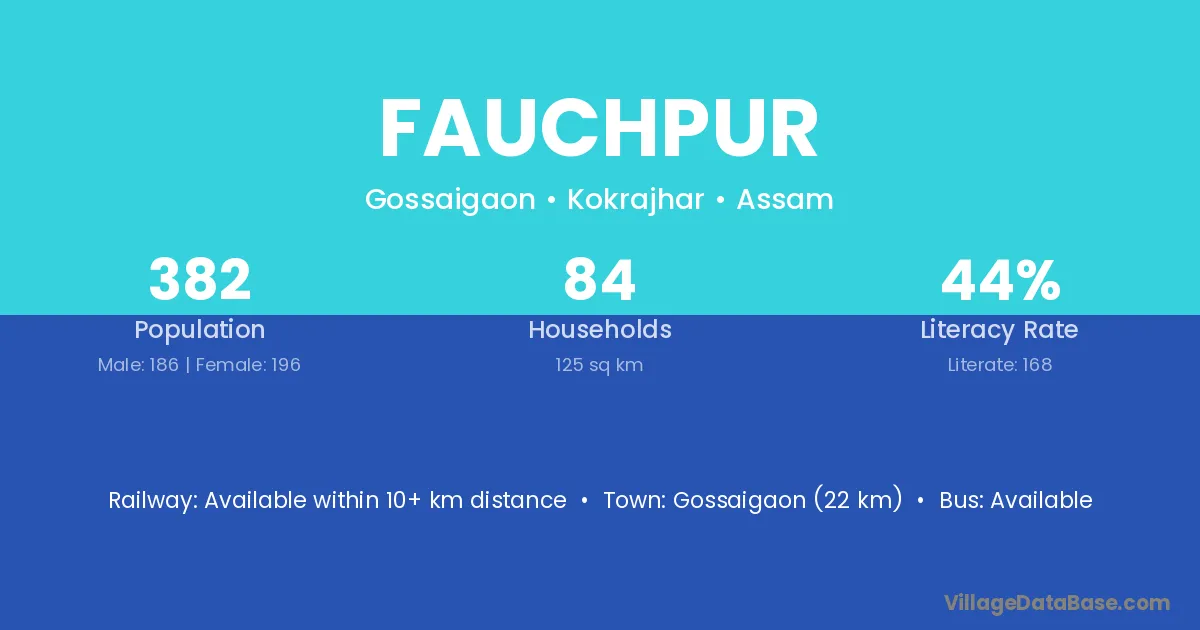 Gossaigaon (22 km) is the nearest town to Fauchpur village for major economic activities and is located approximately 22 km away.
