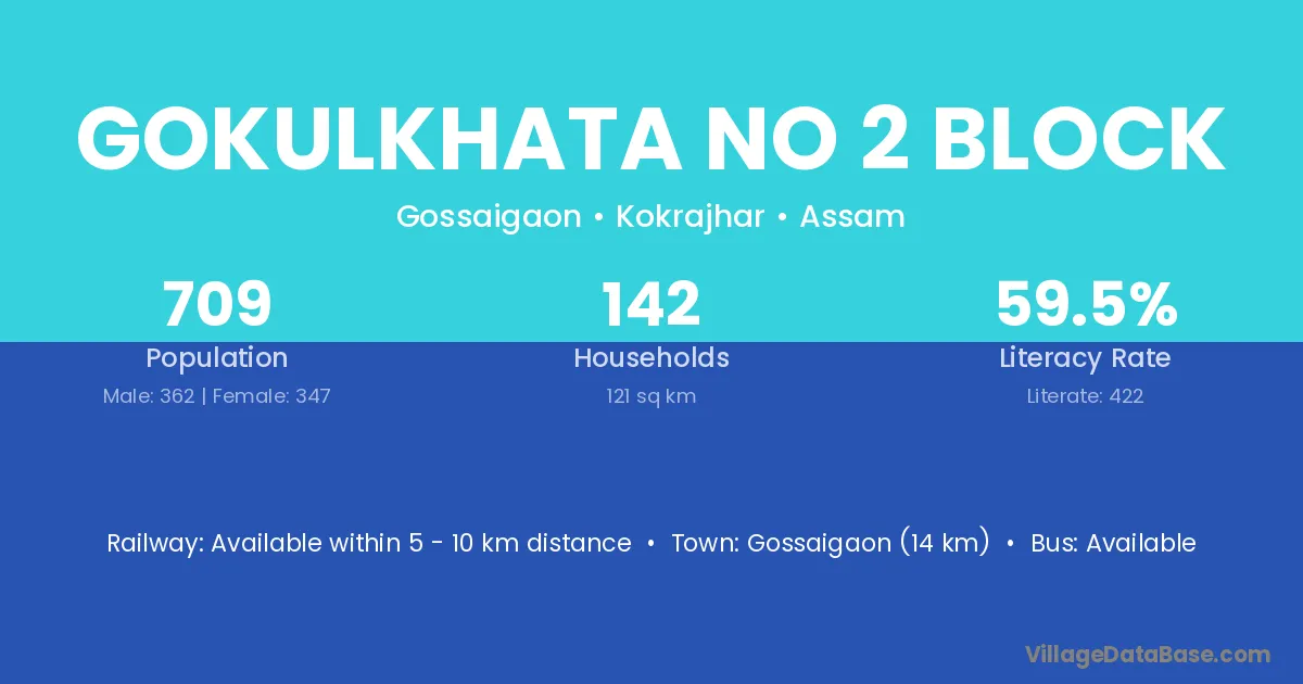 Gokulkhata No 2 Block village has a total population of 709 people, of which 362 are males and 347 are females.
