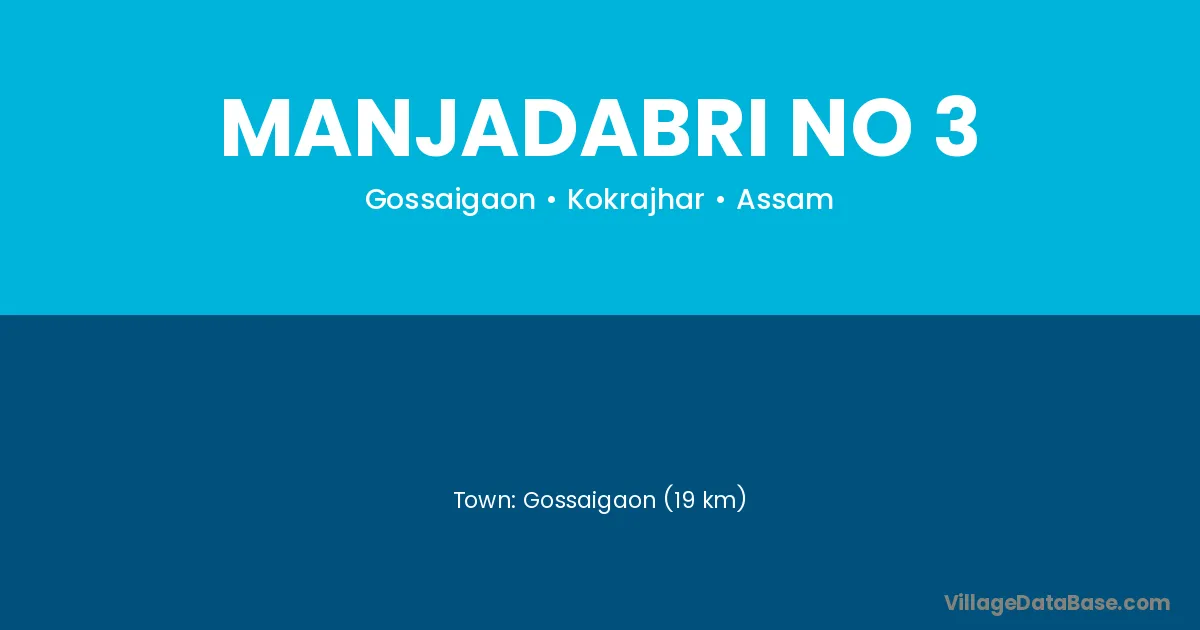 Gossaigaon (19 km) is the nearest town to Manjadabri No 3 village for major economic activities and is located approximately 19 km away.
