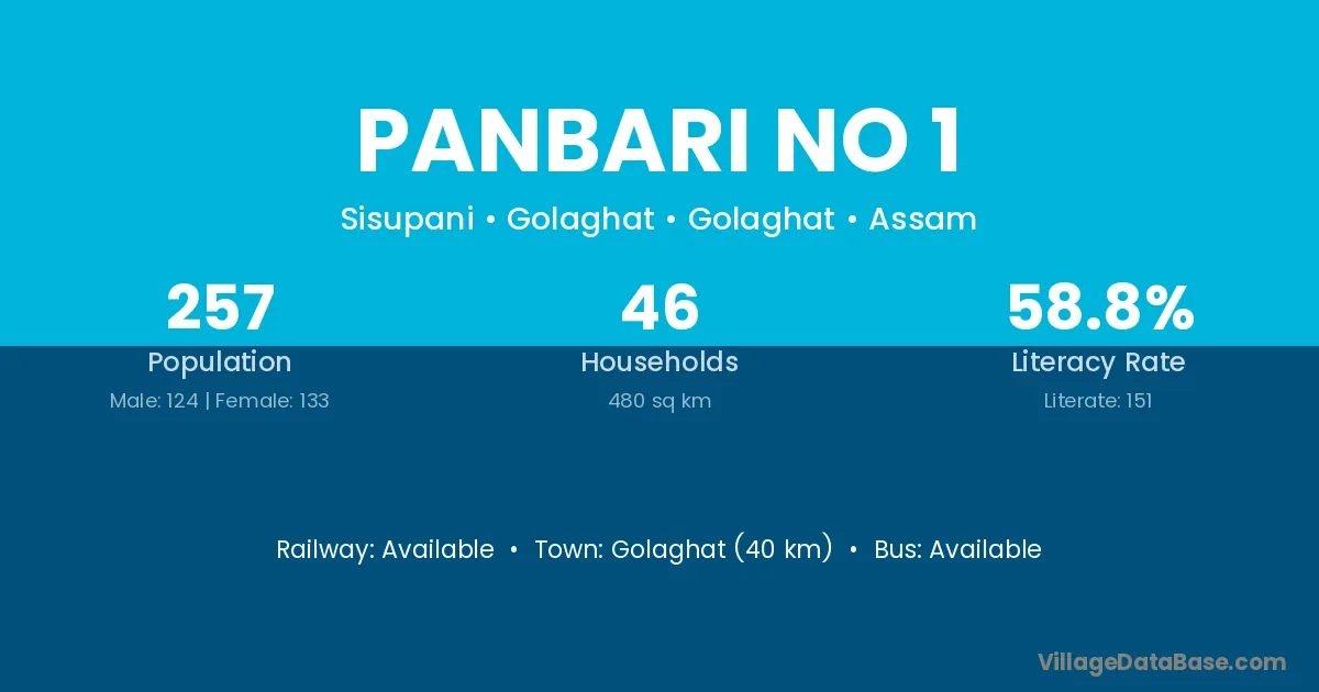 Panbari No 1 village has a total population of 1,069 people, of which 538 are males and 531 are females.