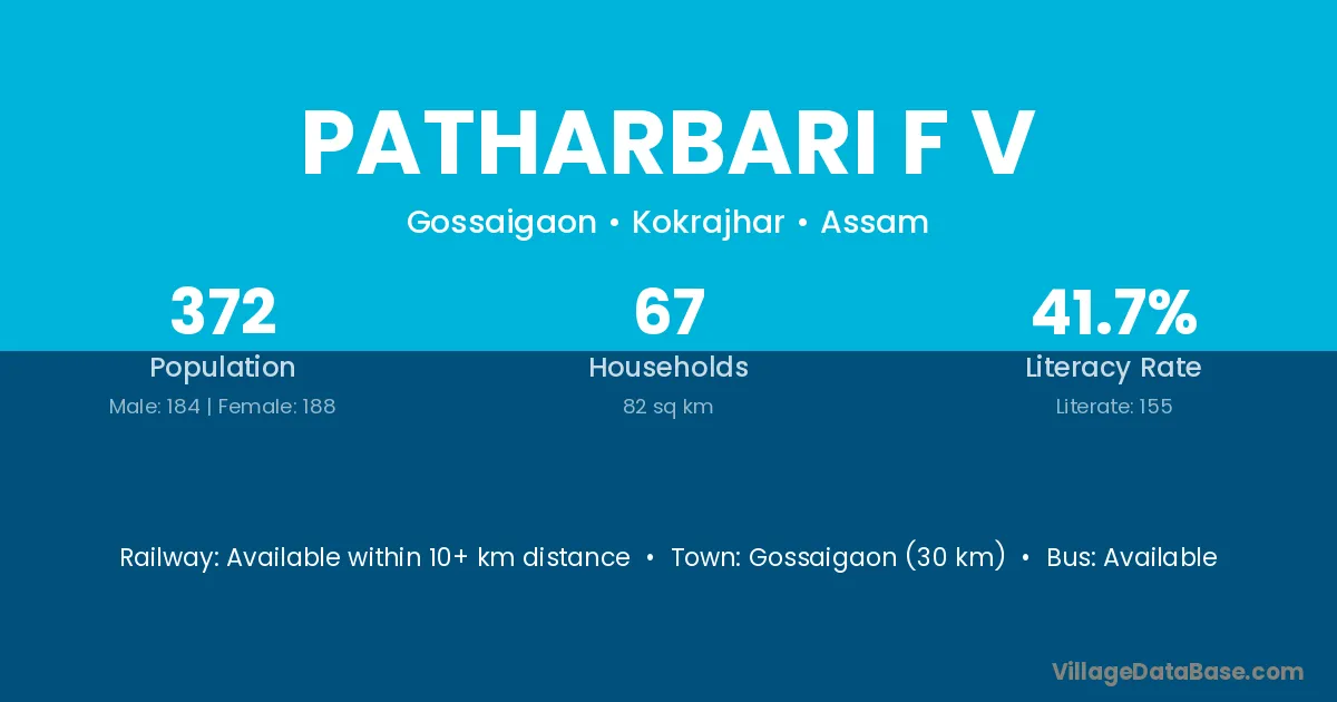 Gossaigaon (30 km) is the nearest town to Patharbari F V village for major economic activities and is located approximately 30 km away.