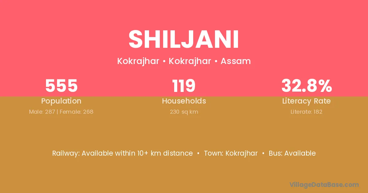 Kokrajhar is the nearest town to Shiljani village for major economic activities