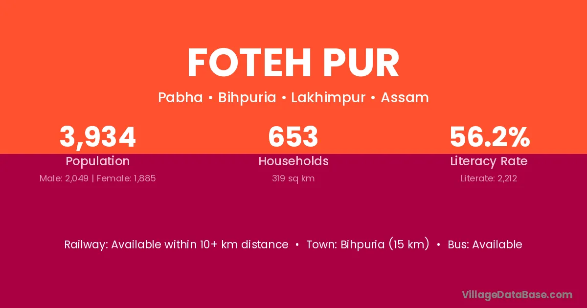 Bihpuria (15 km) is the nearest town to Foteh Pur village for major economic activities and is located approximately 15 km away.