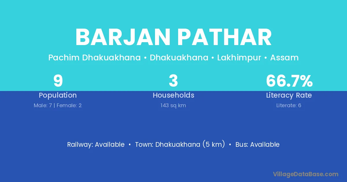 Dhakuakhana (5 km) is the nearest town to Barjan Pathar village for major economic activities and is located approximately 5 km away.