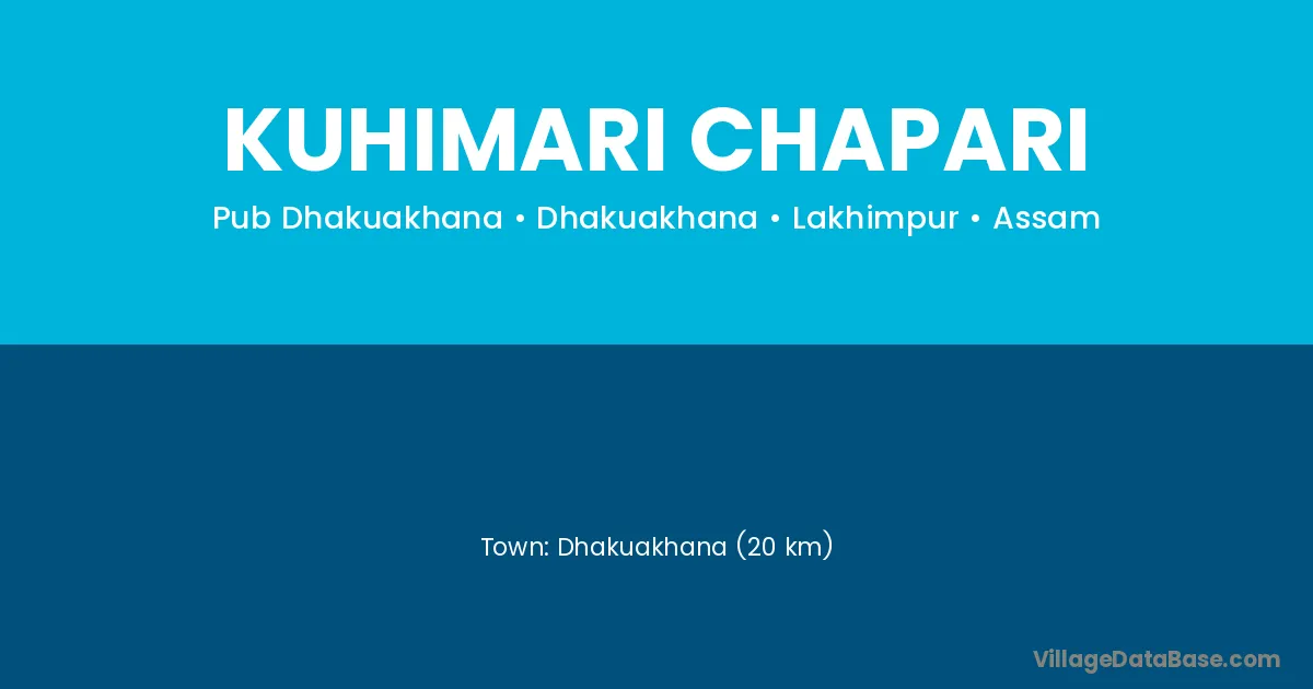 Dhakuakhana (20 km) is the nearest town to Kuhimari Chapari village for major economic activities and is located approximately 20 km away.
