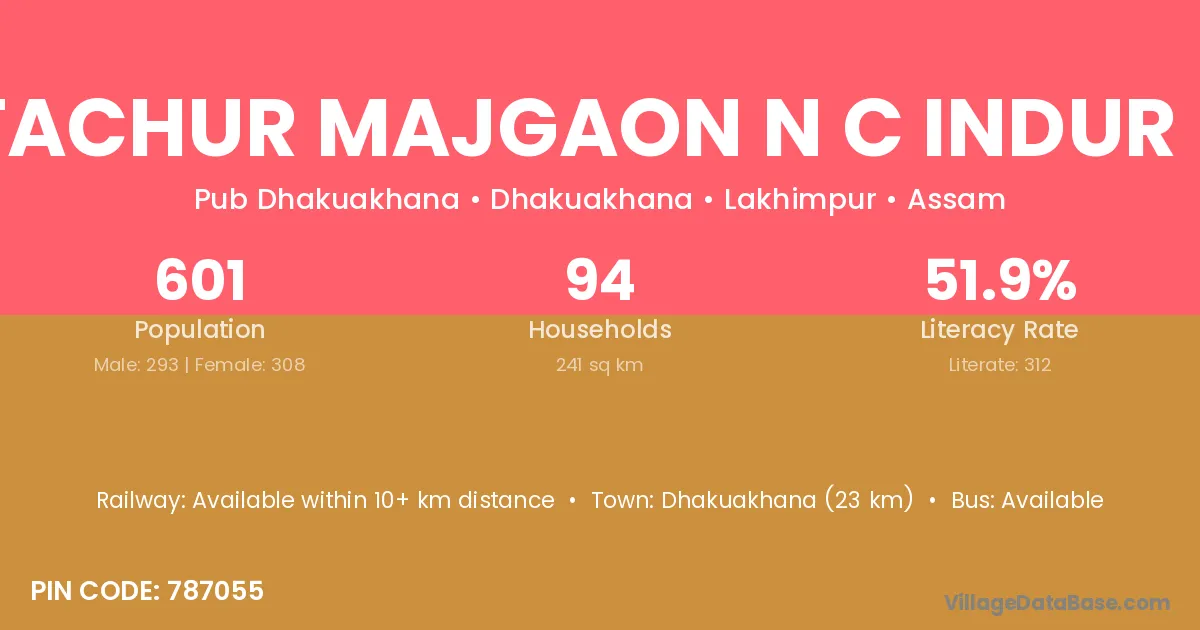 Dhakuakhana (23 km) is the nearest town to Lutachur Majgaon N C Indur N C village for major economic activities and is located approximately 23 km away.