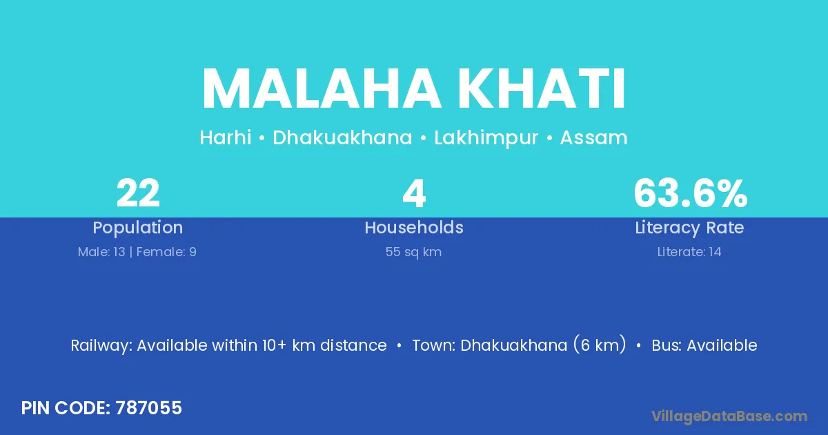 Dhakuakhana (6 km) is the nearest town to Malaha Khati village for major economic activities and is located approximately 6 km away.
