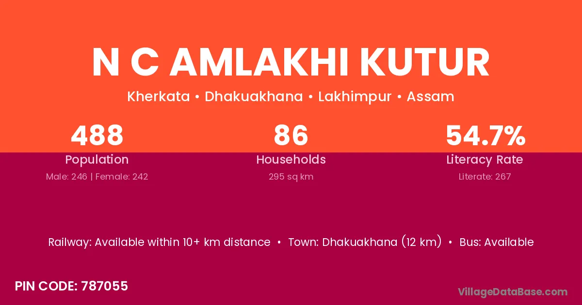 N C Amlakhi Kutur village has a total population of 488 people, of which 246 are males and 242 are females.