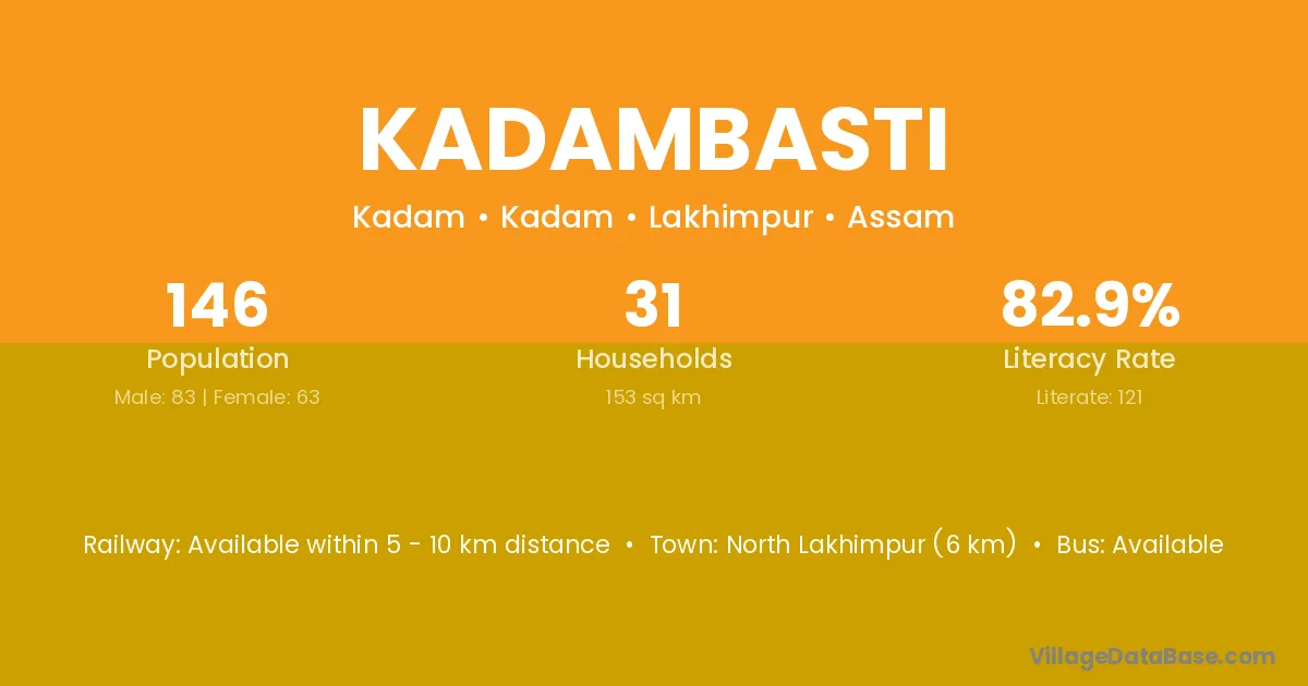 North Lakhimpur (6 km) is the nearest town to Kadambasti village for major economic activities and is located approximately 6 km away.