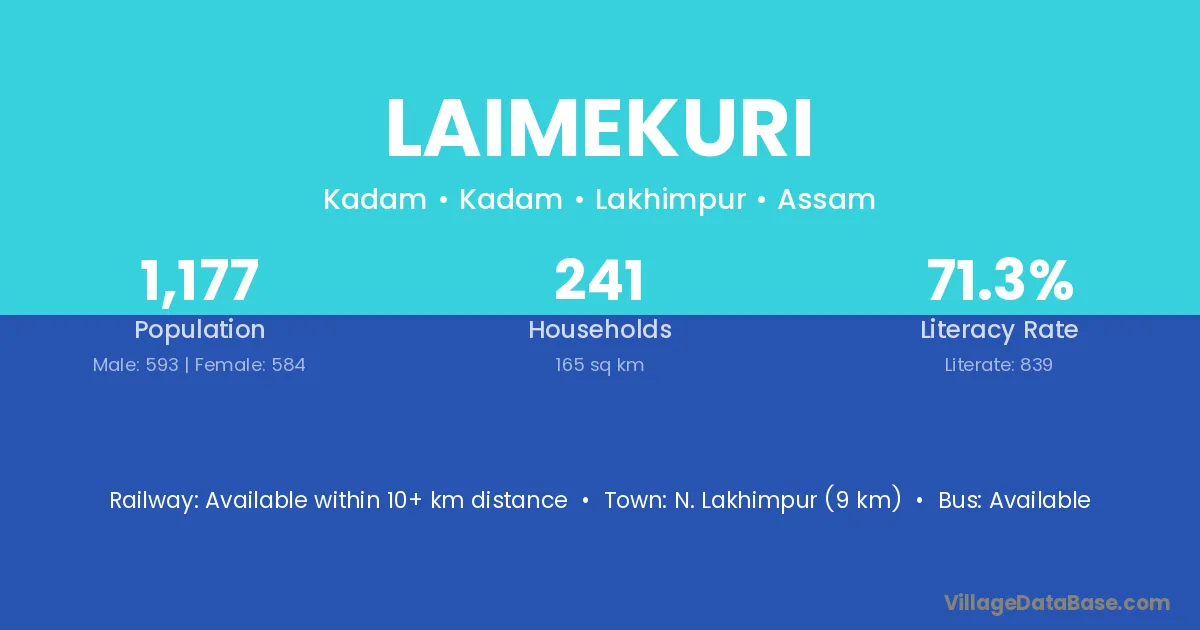 N. Lakhimpur (9 km) is the nearest town to Laimekuri village for major economic activities and is located approximately 9 km away.