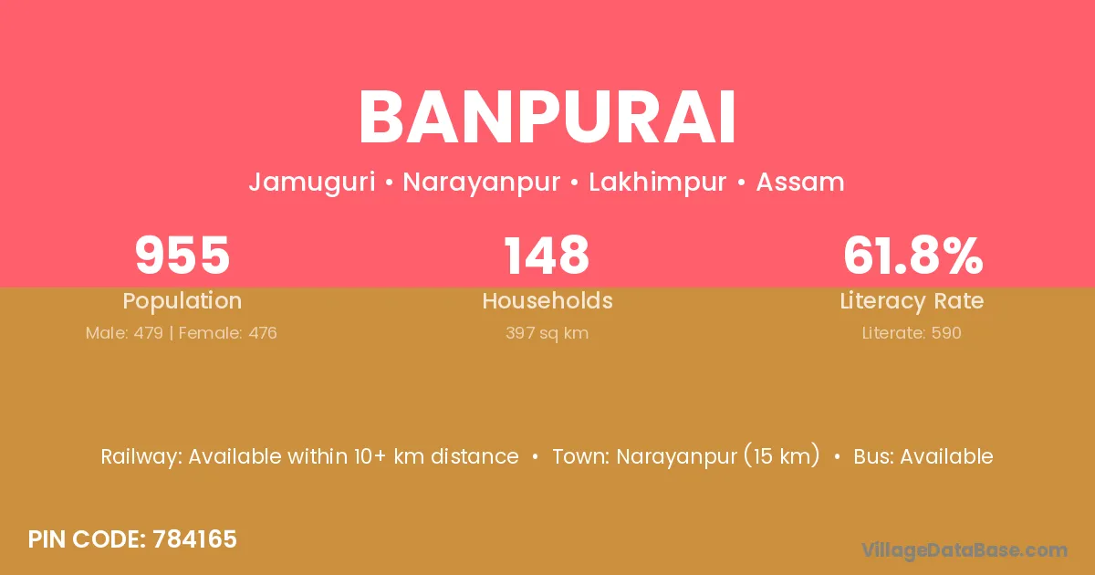 Banpurai village has a total population of 955 people, of which 479 are males and 476 are females.
