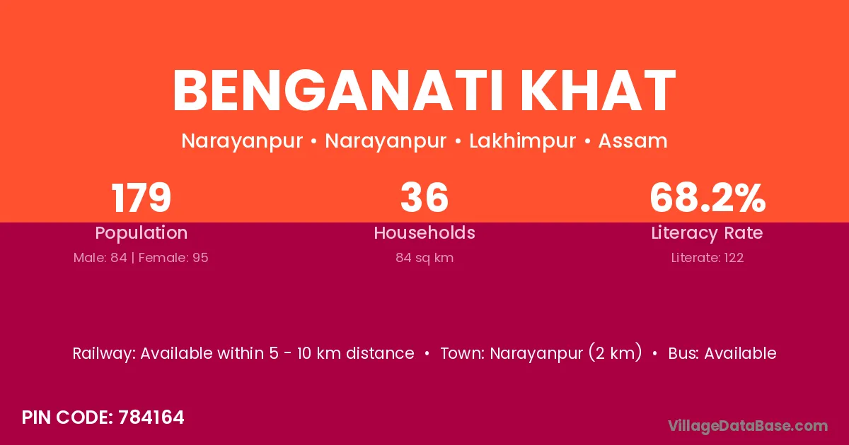 Benganati Khat village has a total population of 179 people, of which 84 are males and 95 are females.