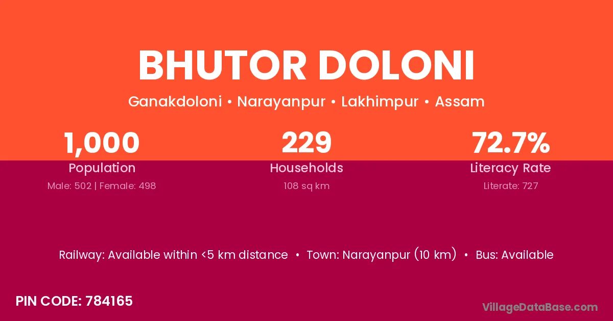 Bhutor Doloni village has a total population of 1,000 people, of which 502 are males and 498 are females.